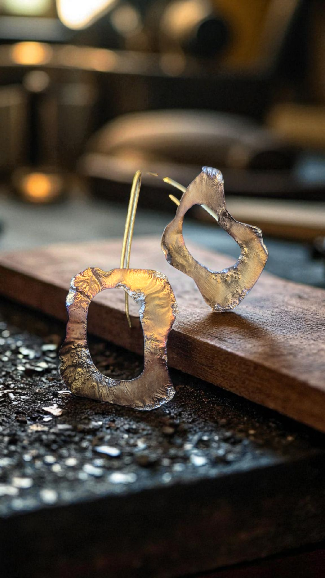 925 ayar gümüş üzeri özel degrade geçişli altın kaplama elyapımı unique tasarım küpe
