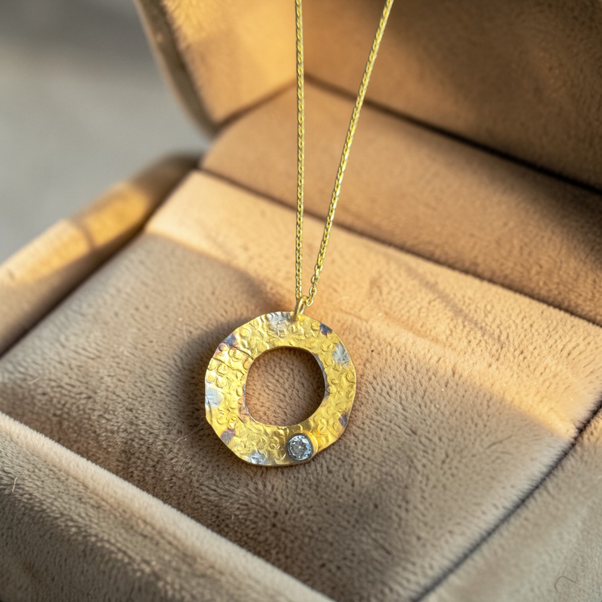 925 ayar gümüş üzeri altın kaplama zirkon taşlı kolye ucu yaklaşık 2.5 cm amorf elyapımı tasarım .