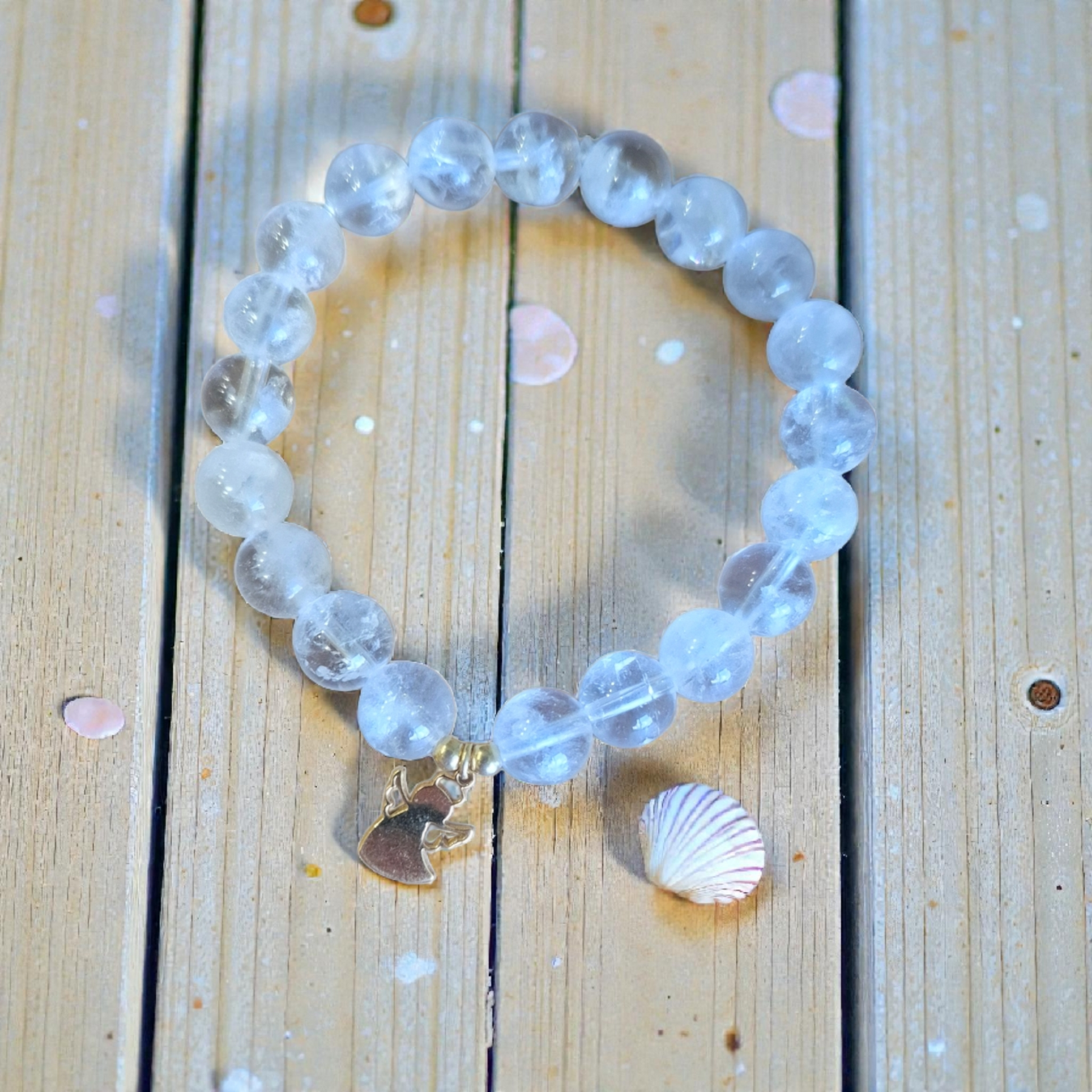 Kristal Kuvars ve 925 ayar gümüş üzeri altın kaplama melek aksesuar ile tasarladığım doğaltaş bileklik