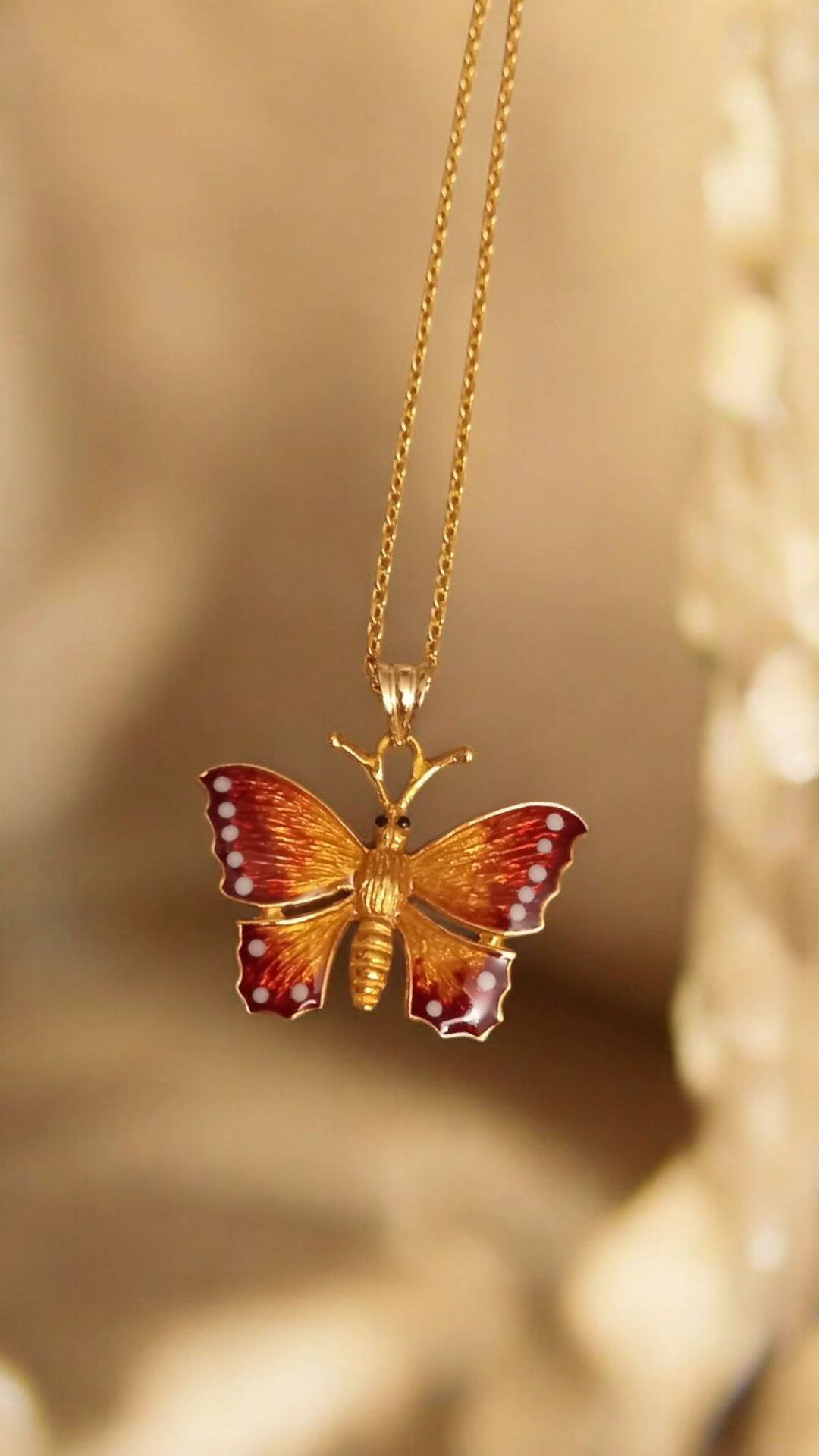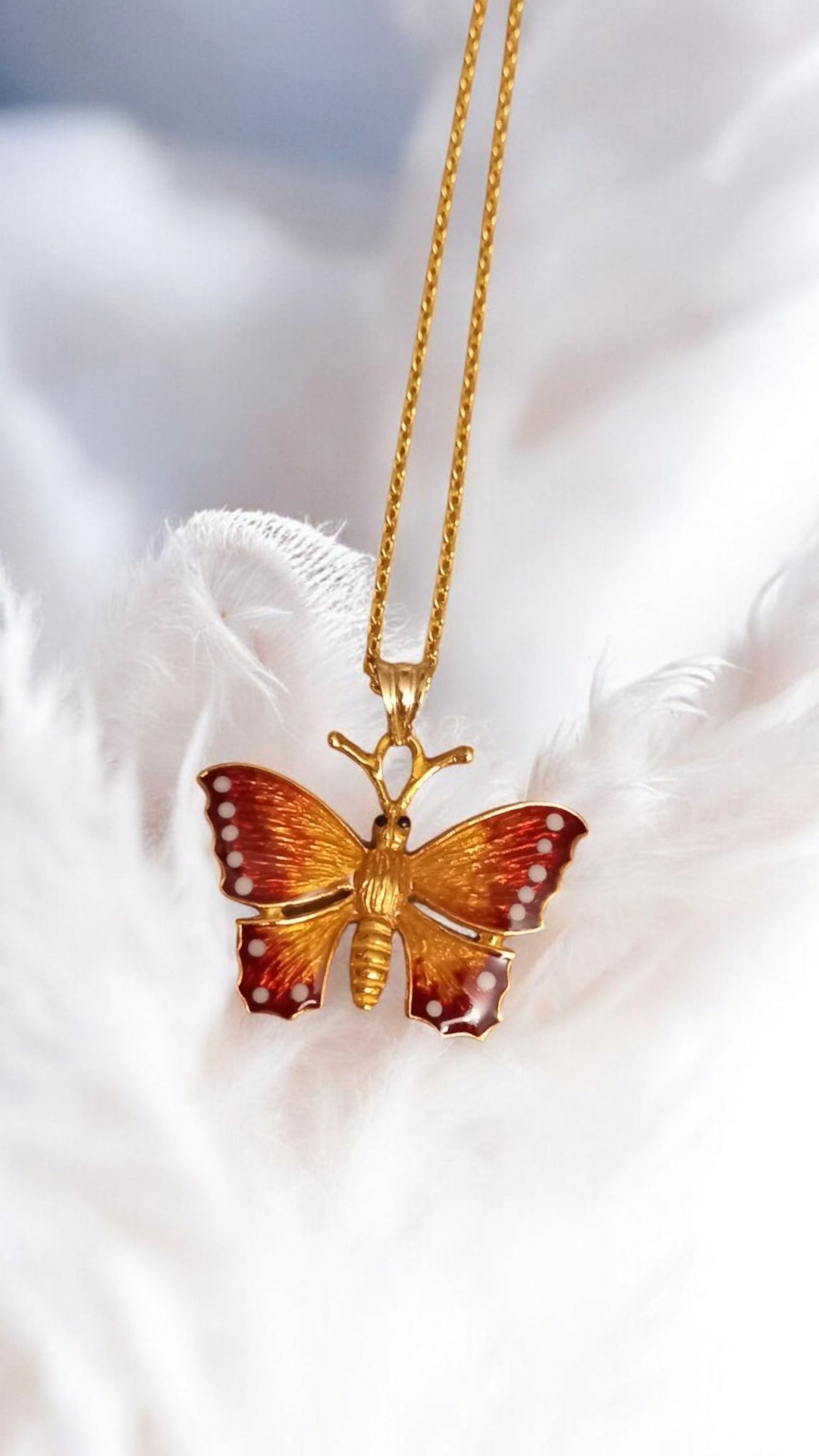 925 ayar gümüş üzeri altın kaplama ve elde mine işlemeli kolye