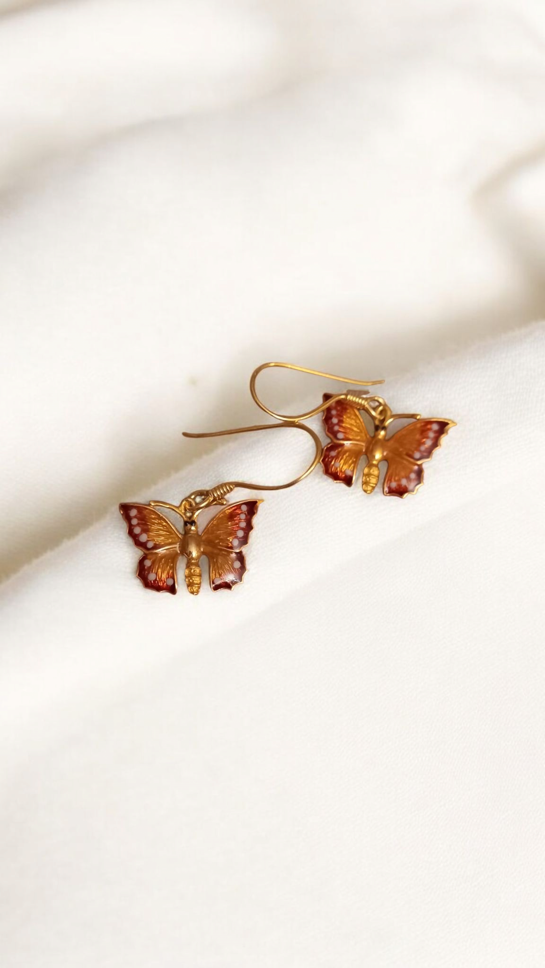 925 ayar gümüş üzeri altın kaplama ve elde mine işlemeli küpe
