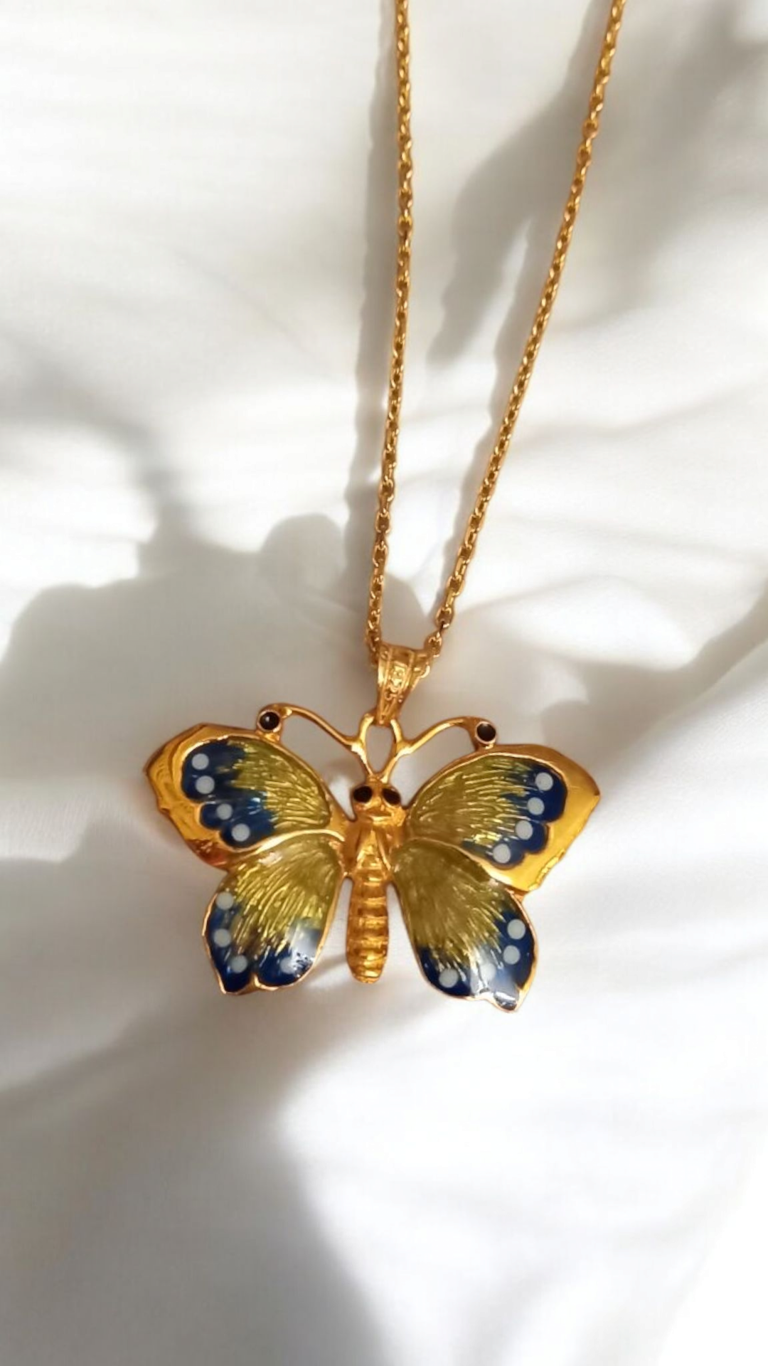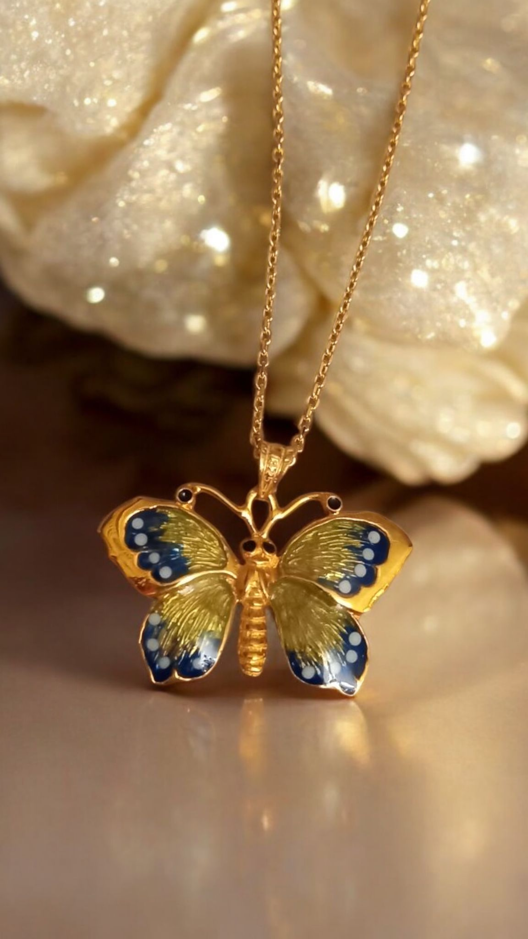 925 ayar gümüş üzeri altın kaplama ve elde mine işlemeli kolye