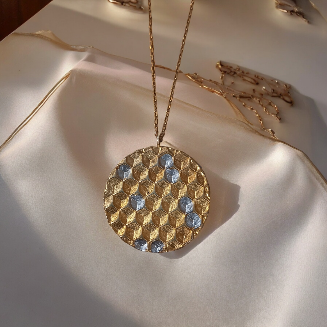 Arılar olmasa balın tadını bilirmiydik..Doğanın dengeleyici unsurlarından Bal Arılarının ürettiği gerçek bal peteğinden çalıştığım kolye ,aynı zamanda bereketi de temsil eder çünkü arılar çalışkanlıkları ile bolluğu ve bereketi de temsil eder.
