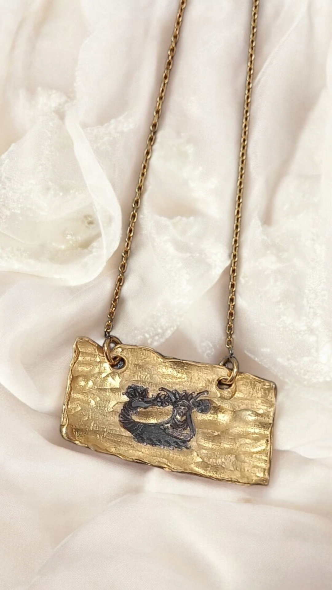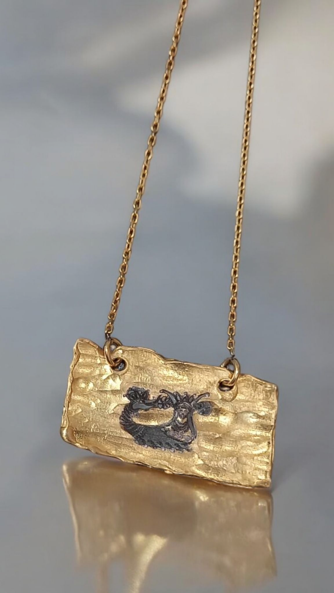 925 ayar gümüş üzeri 18 ayar altın kaplama elyapımı unique tasarım kolye
